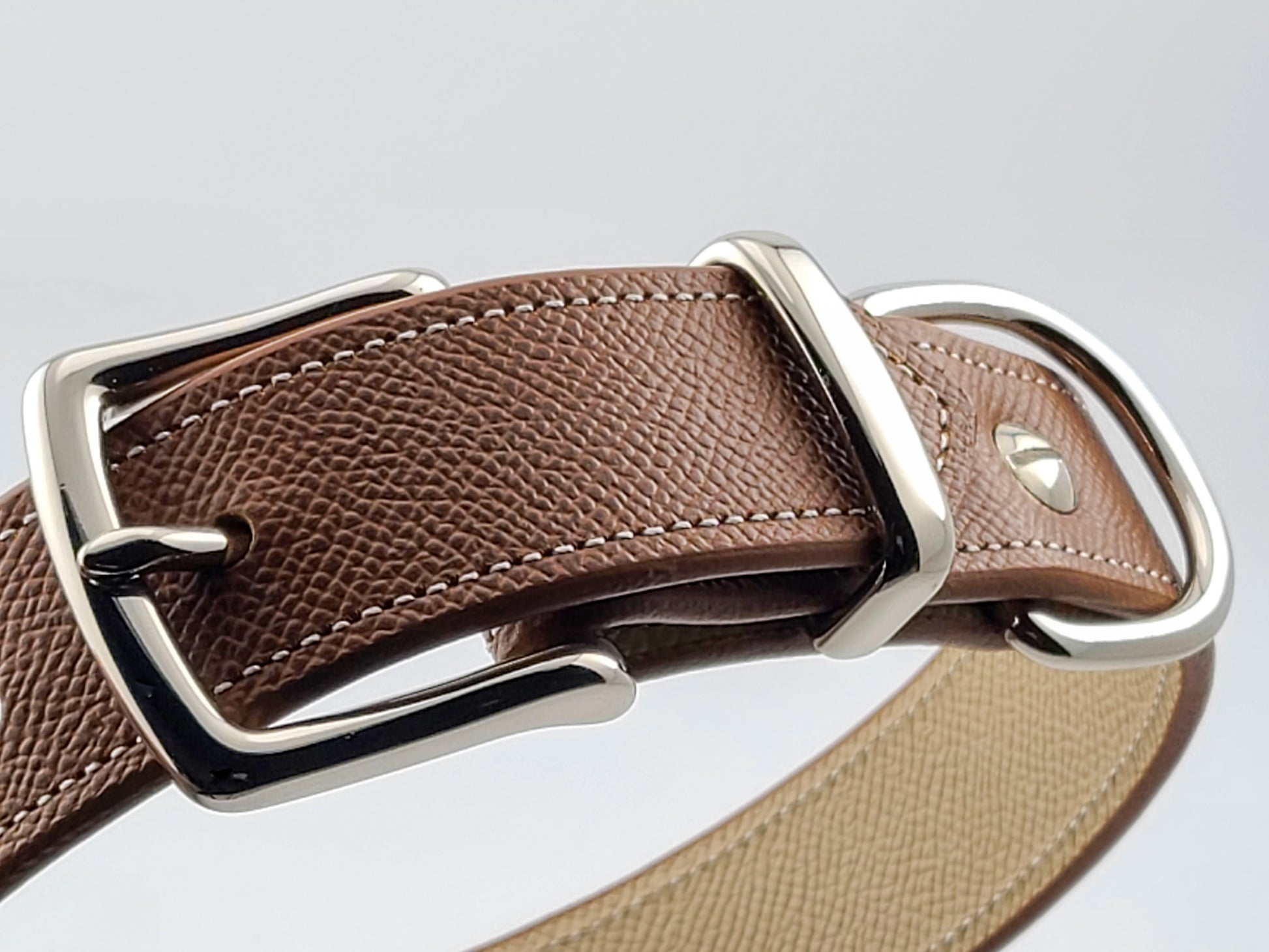 Louis the Dog collars are handcrafted, feature genuine leather, double stiching and 100% brass buckles.